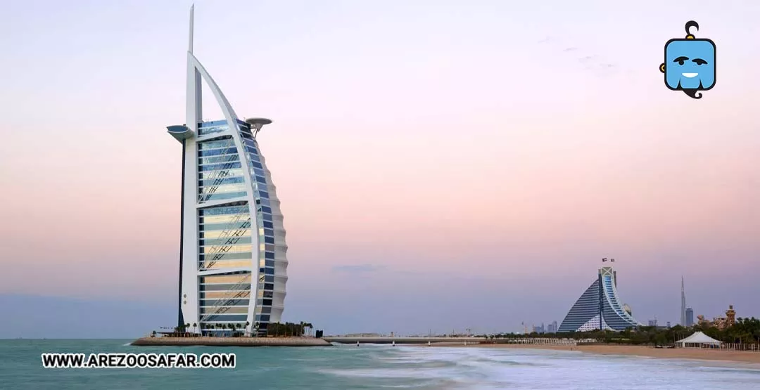 برج العرب که در فاصله چند قدمی ساحل جمیرا قرار دارد، همان هتل بادبانیشکل معروفی است که سالهاست که بهعنوان یکی از معروفترین جاهای دیدنی دبی شناخته میشود. این برج هتل ۷ ستاره و یکی از گرانترین و بزرگترین هتلهای جهان است. در سفر به دبی شبها میتوانید ترکیب رقص نور و منظره دریای خلیج فارس را از اینجا مشاهده کنید.
