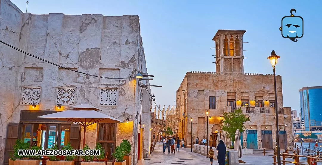 محلهای با کوچههای باریک، بادگیرهای سنتی و خانههای گلی که به قرن ۱۹ برمیگردد. در اینجا میتوانید از اماكن ديدني دبي مثل موزه قهوه، خانه شیخ محمد برای فرهنگ و گالریهای هنری بازدید کنید. صدای اذان، بوی قهوه عربی و آرامش کوچهها شما را به زمانهای قدیم میبرد.
