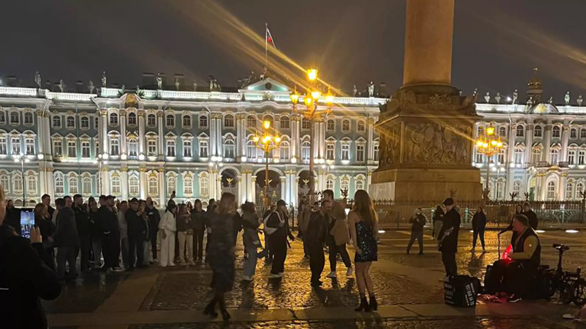 به نوسکی که رسیدیم، سر خیابون یه کتاب‌فروشی خوشگل بود، رفتیم داخل، کلی کتاب، مگنت، ماگ و چیزایی که می‌شد به عنوان سوغاتی خرید بود. بعد راه افتادیم، نوسکی یه طرفش می‌خوره به مرکز خرید گالریا و یه سمت دیگش به میدان کاخ و کلیسای اسحاق. قرار شد چون روز نتونستیم به خاطر بارون از کاخ زمستونی و میدان کاخ دیدن کنیم، اون سمتی بریم. با حدوداً 20 دقیقه پیاده‌روی دیگه رسیدیم به سمت میدان کاخ. یه گروه محلی اجرا داشتن و جوان‌ها دورشون حلقه زده بودن، مشغول تماشای اونا بودیم.